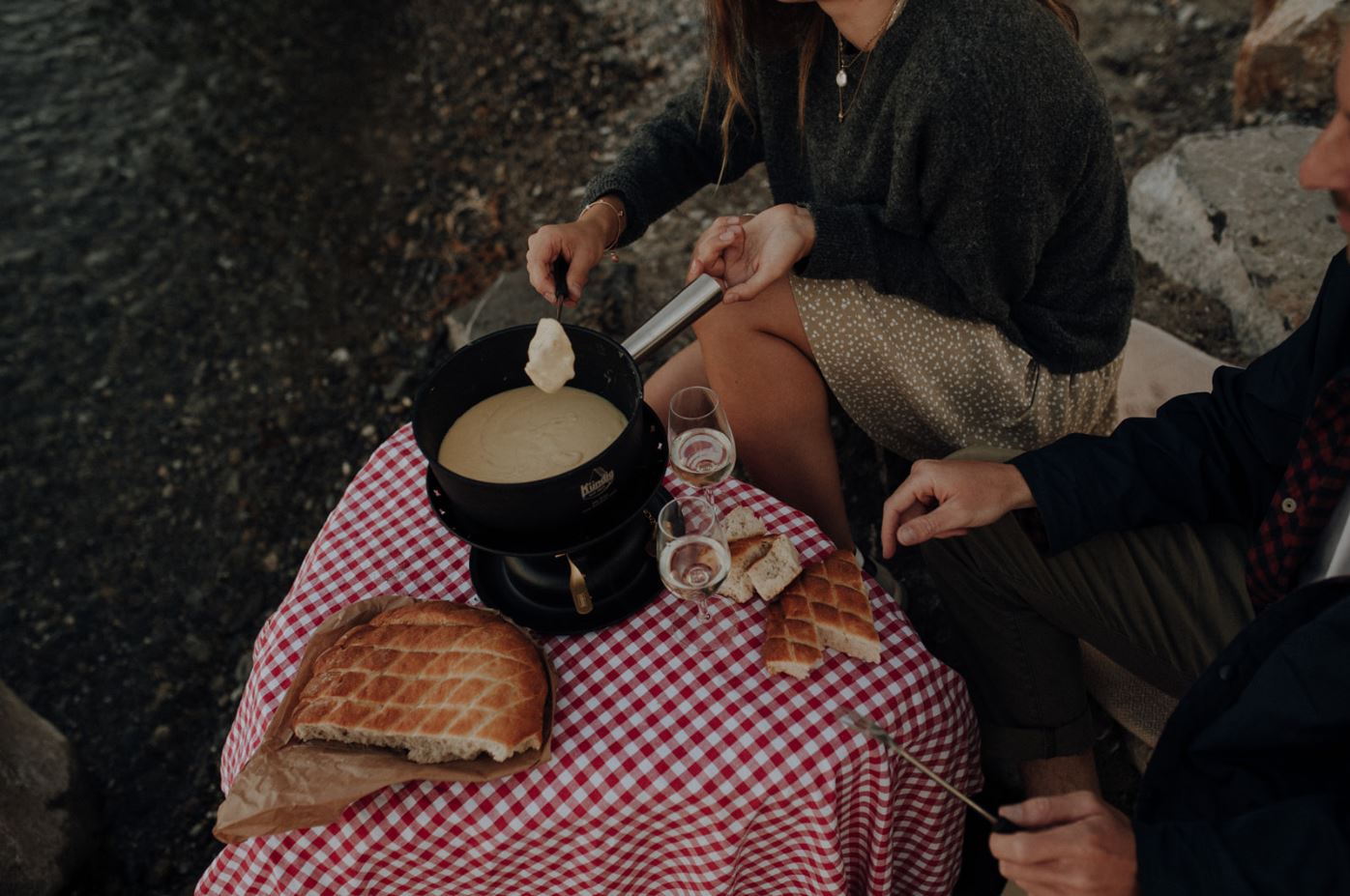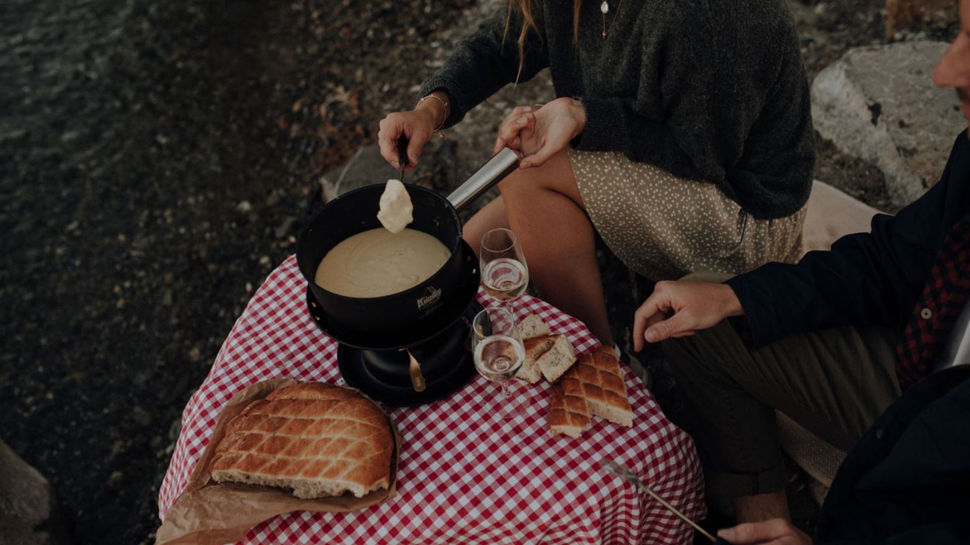 How about a fine cheese fondue in the Drei Weieren surrounded by colourful autumn leaves? We have the fondue backpack with the typical Swiss speciality to take home. The fondue backpack contains everything your heart desires - from the delicious fondue house mix from Kündig Feinkost AG with bread, to the drinkable white wine, all the accessories and a beautiful tablecloth. The fondue backpack is put together by Kündig Feinkost AG and can be collected from the Chäslaube at Webergasse 19 in St.Gallen. Additional regional specialities and drinks can be purchased directly on site. Please note opening hours.